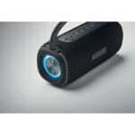 Bezprzewodowy przenośny głośnik 2×10 W z wbudowanym akumulatorem 2400 mAh to urządzenie oferujące doskonałą jakość dźwięku oraz dynamiczne zmieniające się kolory LED, które dodają unikalnego charakteru każdej przestrzeni. Wyposażony w porty AUX, USB, TF, głośnik umożliwia odtwarzanie muzyki z różnych źródeł, co czyni go wyjątkowo uniwersalnym. Dzięki wodoodpornej konstrukcji, jest idealny na zewnątrz, sprawdzając się podczas pikników, przy basenie czy na plaży, oferując ok. 5 godzin nieprzerwanego odtwarzania muzyki. Dodatkowo, głośnik może być personalizowany poprzez nadruk logo firmy, co sprawia, że stanowi atrakcyjny gadżet reklamowy dla przedsiębiorstw poszukujących nowoczesnych i praktycznych rozwiązań promocyjnych. Takie urządzenie nie tylko podkreśli nowoczesny wizerunek marki, ale także zapewni odbiorcom wartościowy i użyteczny prezent, który będzie towarzyszył im w różnych sytuacjach, jednocześnie promując firmę poprzez eksponowane logo.