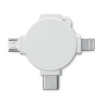 Kabel do ładowania 3 w 1 z trzema różnymi złączami: micro-USB, typ C oraz dwustronnym złączem, jest uniwersalnym rozwiązaniem zaprojektowanym do obsługi szerokiej gamy urządzeń zarówno z systemem iOS, jak i Android. Taka wszechstronność czyni go niezbędnym akcesorium dla każdego, kto korzysta z różnorodnych gadżetów elektronicznych i chce uniknąć konieczności noszenia wielu różnych kabli. Możliwość personalizacji kabla w pełnym kolorze otwiera szerokie możliwości dla firm chcących wykorzystać ten produkt jako narzędzie marketingowe. Dzięki niemu można nie tylko umieścić na nim logo firmy, ale również dowolne grafiki czy hasła reklamowe, co sprawia, że staje się on atrakcyjnym gadżetem reklamowym, który z łatwością przyciągnie uwagę i zostanie doceniony przez klientów i partnerów biznesowych za jego praktyczność i indywidualnie dopasowany design. Jest to idealny wybór dla firm z branży technologicznej, telekomunikacyjnej lub każdej innej, która chce w nowoczesny sposób promować swoją markę, jednocześnie oferując wartościowy i użyteczny produkt.