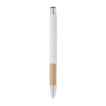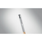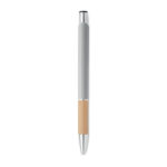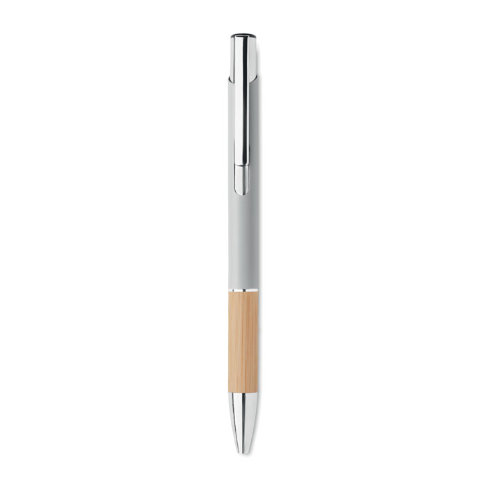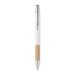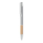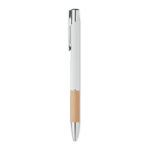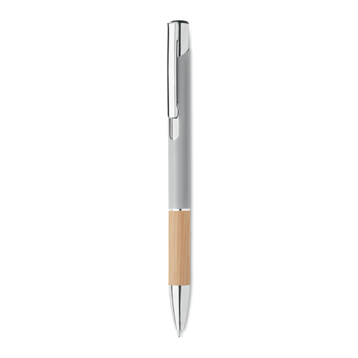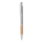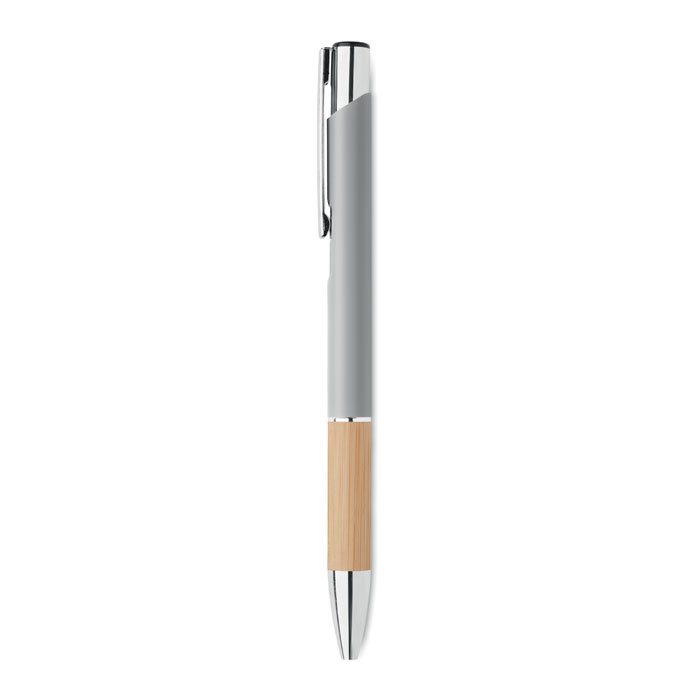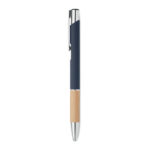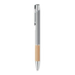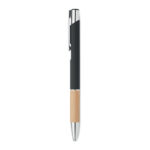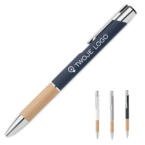 Przyciskany długopis z aluminium z bambusowym uchwytem łączy w sobie elegancję i ekologiczne podejście. Wyposażony w niebieski tusz, zapewnia wysoki komfort pisania. Konstrukcja z aluminium gwarantuje trwałość i lekkość, a naturalny bambusowy uchyt dodaje unikalnego charakteru. Ten długopis jest doskonałym wyborem dla firm szukających sposobu na wyróżnienie się poprzez promowanie swojej marki na gadżetach reklamowych z myślą o ekologii. Możliwość personalizacji poprzez naniesienie logo firmy czyni go nie tylko praktycznym narzędziem do pisania, ale również skutecznym nośnikiem reklamowym, podkreślającym zielone wartości marki.