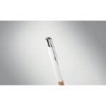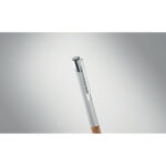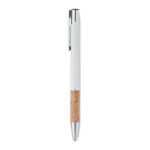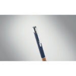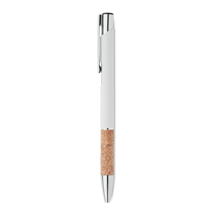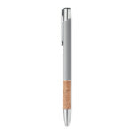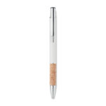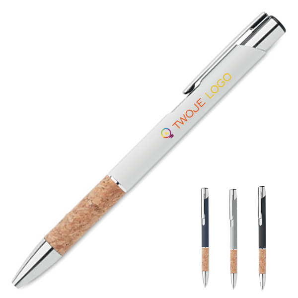 Przyciskany długopis wykonany z aluminium z eleganckim korkowym uchwytem to połączenie nowoczesności i ekologicznego designu. Niebieski tusz zapewnia komfort pisania i czytelność zapisów. Kombinacja metalowego korpusu z naturalnym korkiem nie tylko przyciąga wzrok, ale także gwarantuje wygodę użytkowania oraz trwałość produktu. Długopis ten doskonale nadaje się jako praktyczny gadżet reklamowy, który może zostać spersonalizowany poprzez nadruk lub grawerowanie logo firmy, co sprawia, że jest idealnym wyborem dla przedsiębiorstw ceniących sobie zarówno styl, jak i ekologię. To świetny sposób na promocję marki, który jednocześnie podkreśla zaangażowanie firmy w ochronę środowiska naturalnego.