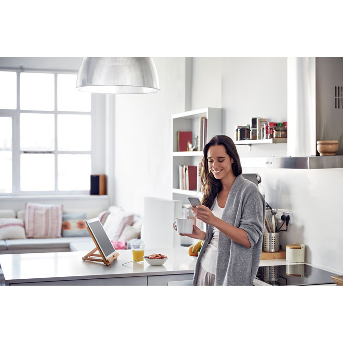 Składana podstawka pod tablet lub smartfon wykonana z bambusa to elegancki i ekologiczny gadżet reklamowy, który łączy w sobie funkcjonalność i zrównoważony rozwój. Bambus, będący produktem naturalnym, nie tylko nadaje podstawce unikatowy wygląd dzięki możliwym różnicom w kolorze, wzorze i rozmiarze, ale także podkreśla ekologiczne wartości marki. Podstawka umożliwia użytkownikowi ustawienie urządzenia pod idealnym kątem, co zwiększa komfort oglądania, czytania czy uczestnictwa w wideokonferencjach. Składana konstrukcja zapewnia łatwość przechowywania i transportu, co czyni ją idealnym akcesorium dla osób często korzystających z urządzeń mobilnych w różnych lokalizacjach. Personalizacja podstawki poprzez umieszczenie logo firmy może skutecznie zwiększyć rozpoznawalność marki, jednocześnie promując ją jako przedsiębiorstwo świadome ekologicznie i nowoczesne. Taka bambusowa podstawka do tabletu lub smartfonu jest doskonałym wyborem dla firm poszukujących praktycznych, estetycznych i przyjaznych dla środowiska gadżetów reklamowych.