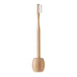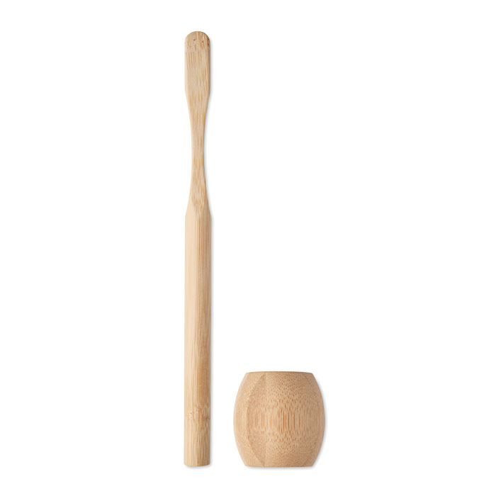 Bambusowa szczoteczka do zębów z nylonowym włosiem i podstawką, zapakowana w ekologiczne pudełko typu kraft, to doskonały gadżet reklamowy dla firm promujących zdrowy styl życia i zrównoważony rozwój. Rączka wykonana z bambusa, materiału znanego ze swoich właściwości antybakteryjnych, trwałości oraz biodegradowalności, jest nie tylko ekologiczna, ale także elegancka i wygodna w użytkowaniu. Nylonowe włosie gwarantuje skuteczne czyszczenie zębów i dbałość o higienę jamy ustnej. Podstawka do szczoteczki to praktyczny dodatek, który ułatwia jej higieniczne przechowywanie. Naturalny charakter bambusa oznacza, że każda szczoteczka może nieco różnić się wyglądem, co czyni ją unikatową. Możliwość personalizacji, np. poprzez umieszczenie logo firmy na rączce szczoteczki lub opakowaniu, oferuje doskonałą okazję do promowania marki wśród osób ceniących ekologiczne i zdrowe rozwiązania. Taka bambusowa szczoteczka do zębów to stylowy, praktyczny i odpowiedzialny wybór na upominek reklamowy, który z pewnością zostanie doceniony przez odbiorców dbających o środowisko i własne zdrowie.