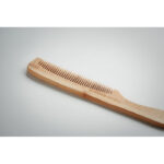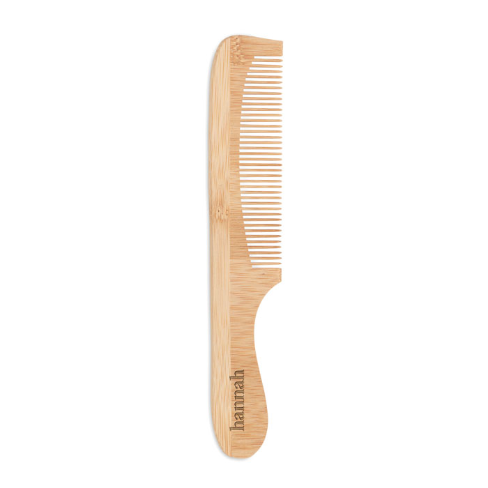 Bambusowy grzebień zapakowany w obwolutę z papieru kraft to wyjątkowy i ekologiczny gadżet reklamowy, który podkreśla zaangażowanie firmy w ochronę środowiska i promowanie zrównoważonego rozwoju. Wykonany z bambusa, materiału znanego ze swojej trwałości, szybkiego wzrostu i biodegradowalności, grzebień jest nie tylko przyjazny dla środowiska, ale także delikatny dla włosów i skóry głowy. Naturalny charakter bambusa sprawia, że każdy grzebień jest unikatowy, co może objawiać się drobnymi różnicami w kolorze, wzorze i rozmiarze. Elegancka obwoluta z papieru kraft dodatkowo podkreśla ekologiczny charakter produktu i jest idealna do personalizacji, na przykład poprzez nadrukowanie logo firmy lub hasła promocyjnego, co czyni go doskonałym narzędziem marketingowym. Taki bambusowy grzebień to doskonała propozycja dla firm z branży kosmetycznej, wellness, hotelarskiej czy spa, pragnących oferować swoim klientom wysokiej jakości, praktyczne i ekologiczne produkty, które będą służyć na co dzień, jednocześnie promując markę jako świadomą ekologicznie i dbającą o dobrostan swoich klientów.