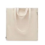 Torba zakupowa lub plażowa wykonana z polibawełny z recyklingu, składającej się w 70% z bawełny z recyklingu i w 30% z poliestru z recyklingu, z krótkimi uchwytami, to innowacyjny gadżet reklamowy, który łączy w sobie ekologiczny charakter i praktyczność. Gramatura 380 gr/m² zapewnia torbie wyjątkową trwałość i odporność, idealną do wielokrotnego użytku, co jest szczególnie ważne w kontekście ekologicznym i zrównoważonego rozwoju. Dodatkowa boczna kieszeń na zamek błyskawiczny zwiększa funkcjonalność torby, umożliwiając bezpieczne przechowywanie drobnych przedmiotów. Wykorzystanie materiałów z recyklingu nie tylko podkreśla zaangażowanie firmy w ochronę środowiska, ale także oferuje konsumentom produkt odpowiadający na współczesne wyzwania ekologiczne. Personalizacja torby, np. poprzez nadruk logo firmy, może skutecznie zwiększyć rozpoznawalność marki i wzmocnić jej pozytywny wizerunek jako przedsiębiorstwa odpowiedzialnego i nowoczesnego. Jest to doskonały wybór dla firm z każdej branży, które pragną oferować swoim klientom i pracownikom wysokiej jakości, funkcjonalne i estetycznie atrakcyjne gadżety reklamowe, odzwierciedlające ich zaangażowanie w promowanie zrównoważonego rozwoju i ekologicznych wartości.