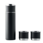 Zestaw z termosem o podwójnych ściankach izolowanych próżniowo ze stali nierdzewnej, wyposażony w szczelną zakrętkę oraz 2 dodatkowe kubki, pojemność termosu wynosi 420 ml, a każdego kubka 150 ml, to doskonały gadżet reklamowy dla firm z branży outdoorowej, turystycznej lub korporacyjnej. Stal nierdzewna zapewnia trwałość i bezpieczeństwo użytkowania, a podwójne ścianki próżniowe utrzymują temperaturę napojów przez długi czas, co jest szczególnie cenne podczas podróży, pikników czy w biurze. Zestaw ten, dzięki swojej funkcjonalności i eleganckiemu designowi, jest idealnym prezentem dla klientów i pracowników, promując markę jako zorientowaną na jakość i komfort użytkowników. Personalizacja termosu i kubków, np. poprzez nadruk lub grawerowanie logo firmy, może dodatkowo zwiększyć rozpoznawalność marki i pozytywnie wpłynąć na jej wizerunek. Ten praktyczny i stylowy zestaw z termosem i kubkami stanowi wartościowy gadżet reklamowy, który z pewnością zostanie doceniony przez odbiorców, jednocześnie promując firmę jako świadomą potrzeb swoich klientów i dbającą o ich wygodę w różnych sytuacjach życiowych.