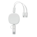 Zwijany kabel ładujący Multi-USB z ABS z bambusowym wykończeniem to nowoczesne i ekologiczne rozwiązanie dla potrzeb ładowania różnych urządzeń elektronicznych. Wyposażony w wejście 2 w 1 Type-C i Type-A oraz wyjście Typ-C, 2-w-1 micro-B oraz złącze Lighting, ten kabel jest niezwykle uniwersalny i pozwala na ładowanie większości dostępnych na rynku smartfonów, tabletów oraz innych urządzeń. Długość kabla wynosząca 90 cm zapewnia wygodę użytkowania, a chowany mechanizm pozwala na utrzymanie porządku i uniknięcie plątania się przewodów. Bambusowe wykończenie dodaje elegancji i podkreśla ekologiczny charakter produktu, co może być szczególnie atrakcyjne dla świadomych ekologicznie konsumentów. Personalizacja tego zwijanego kabla poprzez naniesienie logo firmy może przekształcić go w atrakcyjny gadżet reklamowy, idealny dla firm pragnących promować swoją markę jako nowoczesną i dbającą o środowisko. Jest to doskonały wybór dla przedsiębiorstw szukających praktycznych i stylowych rozwiązań promocyjnych, które będą codziennie towarzyszyć ich klientom i pracownikom.