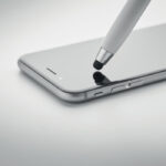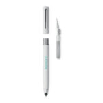 Wykręcany długopis z rysikiem dotykowym, wykonany z tworzywa ABS, który dodatkowo zawiera zestaw do czyszczenia słuchawek dousznych True Wireless Stereo (TWS), to innowacyjny i praktyczny gadżet reklamowy. Zestaw składający się z metalowego wkładu, gąbki i pędzelka umożliwia łatwe i skuteczne czyszczenie słuchawek, zapewniając ich dłuższą żywotność i lepszą higienę użytkowania. Długopis z niebieskim tuszem łączy w sobie funkcjonalność tradycyjnego pisania z nowoczesnym rysikiem dotykowym, co czyni go idealnym narzędziem dla użytkowników urządzeń mobilnych. Personalizacja tego gadżetu, np. poprzez umieszczenie logo firmy, może skutecznie zwiększyć rozpoznawalność marki, promując ją jako nowoczesną i dbającą o potrzeby swoich klientów. Jest to doskonały wybór dla firm z branży technologicznej, edukacyjnej lub każdej innej, która chce zaoferować swoim klientom i pracownikom praktyczne, wielofunkcyjne narzędzie, które znajdzie zastosowanie w codziennym życiu.