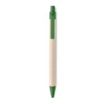 Przyciskany długopis z korpusem wykonanym z recyklingu kartonów po mleku, w połączeniu z elementami wykonanymi z PLA, czyli polilaktydu (biodegradowalnego materiału pochodzącego z kukurydzy), to innowacyjne i ekologiczne rozwiązanie dla codziennego użytku. Niebieski tusz zapewnia wyraźne i płynne pisanie, sprawiając, że długopis jest doskonały do pracy, szkoły czy domu. Długopis z kartonu po mleku jest nie tylko praktyczny, ale także stanowi wyraz troski o środowisko, promując recykling i zrównoważony rozwój. Idealnie nadaje się jako gadżet reklamowy dla firm, które chcą podkreślić swoje ekologiczne wartości i zobowiązanie do ochrony planety.