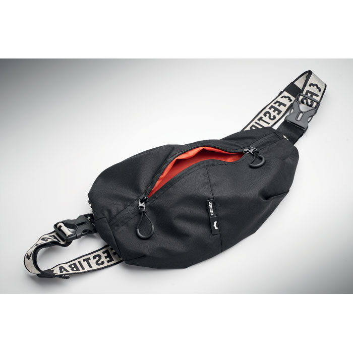 Festibax® Premium, wykonana z dwukolorowego, barwionego kationowo poliestru 300D, jest nie tylko idealną torbą festiwalową zapewniającą trwałość i unikalny wygląd, ale także doskonałym gadżetem reklamowym dla firm pragnących promować swoje logo w oryginalny sposób. Odpinany i regulowany pasek gwarantuje łatwe dostosowanie torby do indywidualnych preferencji, co zwiększa komfort noszenia. Z myślą o bezpieczeństwie, torba oferuje przednią i tylną komorę antykradzieżową, chroniąc cenne przedmioty, takie jak telefon, portfel czy klucze. Festibax® Premium łączy funkcjonalność z nowoczesnym designem, stając się stylowym dodatkiem na każdy festiwal i doskonałą platformą dla firm do eksponowania swojego logo. Dzięki możliwości personalizacji, torba staje się efektywnym nośnikiem marki, podkreślając zaangażowanie firmy w promowanie bezpieczeństwa, wygody i stylu. Idealna jako gadżet reklamowy, Festibax® Premium jest najlepszym wyborem dla tych, którzy cenią sobie połączenie praktyczności, bezpieczeństwa i modnego wyglądu, promując jednocześnie markę w dynamicznym i modnym środowisku festiwalowym.