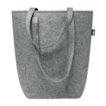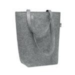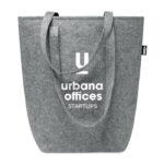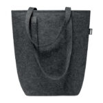 Filcowa torba na zakupy RPET, wyposażona w długie uchwyty i płaskie dno, łączy w sobie funkcjonalność, styl oraz troskę o środowisko. Wykonana z recyklingowanego PET, torba jest nie tylko trwała, ale także stanowi ekologiczną alternatywę dla tradycyjnych toreb jednorazowych. Długie uchwyty zapewniają wygodę w noszeniu, umożliwiając łatwe przenoszenie zakupów, a płaskie dno zwiększa stabilność i pojemność torby, ułatwiając organizację przestrzeni wewnątrz. Materiał filcowy dodaje torbie unikalnego wyglądu i jest miły w dotyku, co czyni ją stylowym dodatkiem do codziennego użytku. Ta filcowa torba na zakupy RPET to idealne rozwiązanie dla osób szukających wytrzymałych, praktycznych i przyjaznych dla środowiska opcji na zakupy.