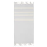 Koc Hamman, który może również służyć jako ręcznik plażowy, wykonany z tkanin pochodzących z recyklingu – mieszanki recyklingowanej bawełny i recyklingowanego poliestru w proporcjach 45%-55%, z gramaturą 140 gr/m², to stylowy i ekologiczny gadżet reklamowy. Wybór materiałów z recyklingu nie tylko przyczynia się do redukcji odpadów i wspiera zrównoważony rozwój, ale także pokazuje zaangażowanie firmy w ochronę środowiska. Lekki i przewiewny materiał sprawia, że koc jest idealny na letnie dni na plaży, piknik czy jako stylowy dodatek do domowego wnętrza. Możliwość personalizacji, na przykład poprzez umieszczenie logo firmy czy specjalnego przesłania, może skutecznie zwiększyć rozpoznawalność marki, promując jednocześnie wartości ekologiczne. Taki koc Hamman/ręcznik plażowy jest doskonałym wyborem dla firm poszukujących oryginalnych, użytecznych i przyjaznych dla środowiska gadżetów reklamowych, które zostaną docenione przez odbiorców za ich wielofunkcyjność, estetykę oraz wkład w ochronę planety.