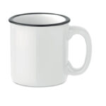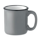 Kubek ceramiczny w stylu vintage o pojemności 240 ml, zapakowany w indywidualny biały kartonik, to elegancki i ponadczasowy gadżet reklamowy, który z pewnością przypadnie do gustu miłośnikom klasycznej estetyki. Jego retro wygląd doskonale komponuje się z nowoczesnymi i tradycyjnymi wnętrzami, dodając im charakteru i ciepła. Pakowanie w biały kartonik nie tylko chroni kubek przed uszkodzeniami podczas transportu, ale również czyni go gotowym do wręczenia jako upominek. Dodatkową zaletą jest zastosowanie transferu na ceramice, który jest odporny na mycie w zmywarce, zapewniając długotrwałość i trwałość nadruku. To istotne dla firm, które chcą, aby ich logo lub przekaz marketingowy pozostały widoczne przez długi czas, nawet przy codziennym użytkowaniu produktu. Kubek vintage jest więc doskonałym wyborem dla organizacji pragnących połączyć praktyczny upominek z efektywnym narzędziem promocyjnym, jednocześnie podkreślając swoje zainteresowanie jakością i zamiłowanie do klasycznej elegancji.