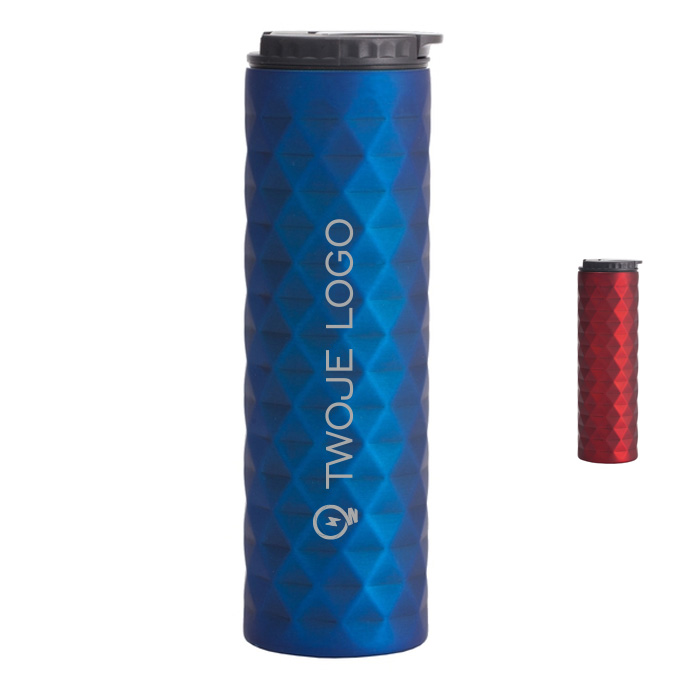 Kubek Izotermiczny Halifax o pojemności 450 ml to idealny wybór dla firm, które pragną oferować nowoczesne i stylowe gadżety reklamowe. Wykonany z pokrytej lakierem stali nierdzewnej, kubek ten wyróżnia się oryginalną gofrowaną powierzchnią o satynowym, przyjemnym w dotyku wykończeniu. Wewnętrzna ścianka wykonana z wysokiej jakości stali 18/8 oraz próżnia między ściankami zapewniają doskonałe właściwości termoizolacyjne. Szczelne zamknięcie typu leak proof efektywnie zapobiega wyciekaniu płynów, a zamknięcie typu flip up sip ułatwia korzystanie. Kubek Halifax utrzymuje ciepło do 8 godzin, co czyni go idealnym towarzyszem w podróży, pracy czy na zewnątrz. Możliwość umieszczenia logo firmy na kubku czyni go doskonałym narzędziem promocyjnym, łączącym funkcjonalność, nowoczesny design i praktyczność. Jest to doskonały upominek dla klientów i pracowników, podkreślając zaangażowanie firmy w oferowanie wysokiej jakości, nowoczesnych produktów reklamowych.