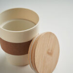 Jednościenny kubek o pojemności 300 ml, wykonany z recyklingowanego polipropylenu (PP), z korkową opaską ochronną i bambusową pokrywką, to innowacyjne połączenie ekologicznych materiałów i funkcjonalnego designu. Kubek ten, będąc wykonanym z PP z recyklingu, stanowi przykład zrównoważonego podejścia do produkcji przedmiotów codziennego użytku, zmniejszając ilość odpadów i promując recykling. Korkowa opaska ochronna nie tylko dodaje kubkowi estetycznego uroku, ale także zapewnia lepszy chwyt i chroni dłonie przed gorącymi napojami, kompensując jednościenną konstrukcję i potencjalne przenoszenie ciepła. Bambusowa pokrywka, będąca kolejnym ekologicznym elementem, dodaje praktyczności, umożliwiając bezpieczne przenoszenie napoju bez obawy o rozlanie, a jednocześnie podkreśla naturalny charakter produktu. Ważne jest, aby mieć na uwadze, że bambus jako materiał naturalny może wykazywać drobne różnice w wyglądzie każdego kubka, co czyni go unikalnym. Kubek ten jest idealnym wyborem dla osób świadomych ekologicznie, poszukujących praktycznych, ale i stylowych rozwiązań na co dzień, a także stanowi doskonałą opcję na gadżet reklamowy dla firm, które chcą podkreślić swoje zaangażowanie w ochronę środowiska i promowanie zrównoważonego stylu życia.