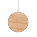 Bezprzewodowa szybka ładowarka wykonana z połączenia bambusa i aluminium to innowacyjny i ekologiczny gadżet reklamowy, który doskonale wpisuje się w nowoczesne trendy i zrównoważony rozwój. Niebieskie światło, które świeci podczas ładowania, dodaje urządzeniu nowoczesnego charakteru i ułatwia użytkownikowi zorientowanie się, że proces ładowania trwa. Dzięki wyjściu DC9V/1.1A oferującemu moc 10W, ładowarka zapewnia szybkie i efektywne ładowanie, będąc kompatybilną z najnowszymi modelami telefonów z systemem Android oraz z iPhone® 8, X i nowszymi. Użycie bambusa, będącego produktem naturalnym, nie tylko podkreśla ekologiczny aspekt produktu, ale również nadaje każdej ładowarce unikatowy wygląd, przy czym należy mieć na uwadze, że mogą wystąpić niewielkie różnice w kolorze i rozmiarze poszczególnych egzemplarzy. Może to wpłynąć na ostateczny efekt zdobienia, jednak jednocześnie sprawia, że każda ładowarka jest jedyna w swoim rodzaju. Personalizacja produktu, np. poprzez grawerowanie lub nadruk logo firmy na elemencie bambusowym lub aluminiowym, może skutecznie zwiększyć rozpoznawalność marki, oferując jednocześnie praktyczny i atrakcyjny prezent dla klientów i pracowników, który podkreśla nowoczesność i świadomość ekologiczną firmy.