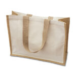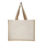 Torba bawełniano-jutowa Mannar w kolorze beżowym to stylowy i ekologiczny gadżet reklamowy, doskonały dla firm pragnących promować zrównoważone i naturalne rozwiązania. Wykonana z kombinacji trwałej bawełny o gramaturze 280 g/m2 oraz juty, torba ta jest nie tylko wytrzymała, ale także estetycznie atrakcyjna. Długie uchwyty torby zapewniają komfortowe noszenie, co jest szczególnie ważne podczas codziennych zakupów czy przenoszenia większych przedmiotów. Szerokość klina wynosząca 15,5 cm zwiększa pojemność torby, co czyni ją jeszcze bardziej funkcjonalną. Torba bawełniano-jutowa Mannar to doskonały wybór dla sklepów, targów ekologicznych, imprez promocyjnych, a także jako upominek dla klientów i pracowników. Możliwość umieszczenia logo firmy na torbie nie tylko zwiększa jej atrakcyjność jako narzędzia marketingowego, ale także podkreśla zaangażowanie firmy w działania na rzecz środowiska.
