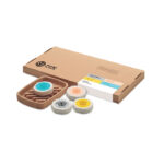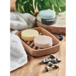 Wegański zestaw kosmetyczny unisex marki Branded by Earth, wyprodukowany w UE, to idealne rozwiązanie dla osób ceniących naturalną pielęgnację i zrównoważony rozwój. Zawiera cztery 50-gramowe wegańskie kostki: do mycia ciała, do mycia włosów, do pilingu twarzy oraz innowacyjną wodę micelarną w kostce, co stanowi kompleksowe rozwiązanie dla codziennej higieny. Korkowa podstawka pod mydełka, wykonana z materiału 100% naturalnego, nie tylko ułatwia przechowywanie kostek, ale również stanowi stylowy dodatek do łazienki. Każda kostka jest zapakowana w papier, a całość prezentowana w eleganckim pudełku z papieru z recyklingu, podkreślając ekologiczny charakter zestawu. Należy pamiętać, że ze względu na naturalną strukturę korka, wygląd nadruku na każdym artykule może się nieznacznie różnić, co czyni każdy zestaw unikatowym. To doskonały wybór dla osób szukających ekologicznych i skutecznych rozwiązań w codziennej pielęgnacji, stanowiący zarówno praktyczny, jak i estetyczny upominek.