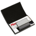 Wizytownik Logomall w kolorze czarnym to elegancki i praktyczny gadżet reklamowy, doskonały dla firm poszukujących wysokiej jakości akcesoriów biurowych do promowania swojej marki. Wykonane z ekoskóry etui na wizytówki jest nie tylko stylowe, ale także trwałe i funkcjonalne, idealne dla profesjonalistów ceniących sobie wyrafinowany design i praktyczność. Magnetyczne zapięcie etui gwarantuje bezpieczne przechowywanie wizytówek i łatwość dostępu do nich, co jest kluczowe w codziennym użytkowaniu. Wizytownik Logomall mieści do 15 sztuk wizytówek, co czyni go wystarczająco pojemnym do większości potrzeb biznesowych. Elegancki czarny kolor i minimalistyczny design sprawiają, że wizytownik ten jest odpowiedni dla szerokiej gamy użytkowników i branż. Umieszczenie logo firmy na wizytowniku nie tylko podnosi jego wartość jako narzędzia marketingowego, ale także pomaga w budowaniu profesjonalnego wizerunku marki.