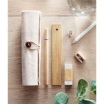 Zestaw biurkowy w etui z juty i bawełny, zawierający bambusową linijkę 15 cm, papierowy ołówek, kartonowy długopis z niebieskim wkładem, drewnianą temperówkę oraz gumkę, jest wyjątkowym gadżetem reklamowym dla firm promujących ekologię i zrównoważony rozwój. Każdy element zestawu został wykonany z materiałów naturalnych lub recyklingowanych, co podkreśla zaangażowanie marki w ochronę środowiska. Bambus, jako materiał linijki, jest trwały i przyjazny dla planety, a jego naturalne różnice w kolorze, wzorze i rozmiarze nadają unikalny charakter. Papierowy ołówek i kartonowy długopis z niebieskim wkładem oferują alternatywę dla tradycyjnych plastikowych przyborów piśmiennych, a drewniana temperówka i gumka są przykładem wykorzystania prostych, ale efektywnych rozwiązań. Etui z juty i bawełny nie tylko ułatwia przechowywanie i transport zestawu, ale również stanowi ekologiczną alternatywę dla syntetycznych opakowań. Personalizacja zestawu poprzez nadruk logo firmy na etui lub elementach zestawu może skutecznie zwiększyć rozpoznawalność marki, jednocześnie promując wartości związane z ochroną środowiska. Zestaw biurkowy w etui z materiałów naturalnych to doskonały wybór dla organizacji poszukujących praktycznych i estetycznie atrakcyjnych gadżetów reklamowych, które odzwierciedlają ich zaangażowanie w działania proekologiczne.