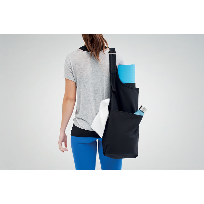 Zestaw fitness do jogi, zawierający matę do jogi o grubości 4 mm oraz linę do ćwiczeń, pakowany w płócienną torbę o gramaturze 340 gr/m² z długim uchwytem, to idealny wybór dla wszystkich praktykujących jogę i dbających o zdrowie oraz dobre samopoczucie. Wszystkie elementy zestawu zostały wykonane z materiałów spełniających certyfikowane standardy dotyczące stosowania szkodliwych substancji w tekstyliach, co gwarantuje bezpieczeństwo i komfort użytkowania. Płócienna torba nie tylko ułatwia transport i przechowywanie zestawu, ale również podkreśla jego ekologiczny charakter. Taki zestaw do jogi jest doskonałym pomysłem na promocję firm i marek, które chcą być kojarzone z aktywnym trybem życia, zdrowiem i troską o środowisko. Możliwość personalizacji torby, np. poprzez nadruk logo, pozwala na skuteczne zwiększenie rozpoznawalności marki wśród szerokiej grupy odbiorców, czyniąc zestaw atrakcyjnym gadżetem reklamowym lub prezentem dla klientów, pracowników oraz partnerów biznesowych.