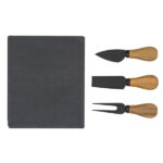 Zestaw do serwowania serów Queso w kolorze beżowym to stylowy i funkcjonalny gadżet reklamowy, idealny dla firm chcących oferować produkty podkreślające elegancję i jakość. Ten zestaw, zapakowany w kartonowe opakowanie, jest doskonałym rozwiązaniem dla każdego miłośnika serów. W skład zestawu wchodzą trzy specjalistyczne noże dedykowane do różnych typów serów: jeden do serów twardych, drugi do serów miękkich i trzeci do serwowania. Dodatkowo, zestaw zawiera deskę z łupka, która nie tylko doskonale nadaje się do serwowania różnych rodzajów serów, ale także stanowi elegancką prezentację na stole. Zestaw Queso jest idealnym wyborem dla sklepów z akcesoriami kuchennymi, delikatesów, winiarni, restauracji, a także jako ekskluzywny upominek korporacyjny. Dodanie logo firmy na zestawie zwiększa jego atrakcyjność jako narzędzia marketingowego i promuje markę jako dbającą o elegancję i wysoką jakość oferowanych produktów.