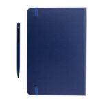 Zestaw notes z długopisem Abrantes to elegancki i praktyczny gadżet reklamowy, doskonały dla firm poszukujących stylowych i użytecznych produktów promocyjnych. Zestaw ten składa się z notesu w twardej oprawie oraz aluminiowego długopisu z rysikiem do obsługi ekranów dotykowych. Notes zawiera 72 kartki w kratkę (papier 70 g/m2), które są idealne do notowania i organizowania myśli. Tasiemka do zaznaczania ostatniej zapisanej strony oraz elastyczna gumka chroniąca wnętrze notesu podnoszą jego funkcjonalność i wygodę użytkowania. Długopis jest wyposażony w niebieski wkład, co zapewnia wyraźne i komfortowe pisanie. Cały zestaw jest pakowany w eleganckie czarne upominkowe pudełko, co czyni go doskonałym pomysłem na prezent dla klientów biznesowych, pracowników oraz partnerów firmy. Możliwość umieszczenia logo firmy na zestawie zwiększa rozpoznawalność marki i podkreśla jej zaangażowanie w oferowanie wysokiej jakości produktów.