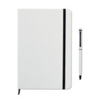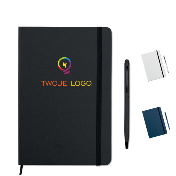 Zestaw notes A5 z długopisem z rysikiem 2 w 1 to wszechstronny i elegancki gadżet reklamowy, który z pewnością przykuje uwagę klientów i partnerów biznesowych. Twarda okładka z PU nadaje zestawowi luksusowy wygląd i zapewnia trwałość, chroniąc kartki przed zagnieceniami i uszkodzeniami. 144 strony w linie (72 kartki) oferują dużo miejsca na notatki, plany czy rysunki. Długopis z rysikiem do ekranów dotykowych to niezwykle praktyczny dodatek, umożliwiający wygodne przełączanie się między pisaniem na papierze a obsługą urządzeń dotykowych. Niebieski tusz zapewnia wyraźne i trwałe zapisy. Dopasowany elastyczny pasek zamykający i zakładka z tasiemki zwiększają funkcjonalność notesu, zapewniając wygodę użytkowania i łatwy dostęp do ważnych stron. Personalizacja zestawu poprzez naniesienie logo firmy czyni go doskonałym narzędziem marketingowym, które zwiększa rozpoznawalność marki i podkreśla jej profesjonalizm.