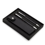 Zestaw Piśmienniczy Curitiba to połączenie nowoczesnej technologii i eleganckiego designu, idealne dla profesjonalistów ceniących sobie wszechstronność w akcesoriach biurowych. Zestaw zawiera aluminiowy długopis oraz pióro kulkowe, oba wyposażone w końcówkę do obsługi ekranów dotykowych, co umożliwia łatwe przełączanie między pisaniem na papierze a obsługą urządzeń cyfrowych. Chromowane dodatki dodają zestawowi wyrafinowanego charakteru. Wkład do długopisu ma średnicę 1,00 mm i jest w kolorze niebieskim, podobnie jak nabój do pióra kulkowego o średnicy 0,7 mm, co zapewnia wygodę i precyzję pisania. Zestaw jest elegancko pakowany w etui z ekoskóry oraz czarne opakowanie upominkowe, co sprawia, że jest idealny jako prezent dla klientów biznesowych lub jako eleganckie wyposażenie biura. Możliwość umieszczenia logo firmy na etui lub opakowaniu upominkowym czyni ten zestaw doskonałym narzędziem marketingowym dla firm, które chcą być kojarzone z nowoczesnymi, eleganckimi i funkcjonalnymi rozwiązaniami. Zestaw Piśmienniczy Curitiba to symbol nowoczesnego profesjonalizmu, idealny dla tych, którzy cenią sobie połączenie stylu i funkcjonalności.