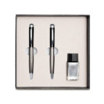 Zestaw Piśmienniczy Gassin to kwintesencja elegancji i luksusu, idealny dla osób, które cenią sobie klasyczne pismo i wysoką jakość materiałów. Składający się z metalowego pióra wiecznego oraz długopisu, zestaw ten jest symbolem tradycyjnego piękna w pisaniu. Dodatkowo dołączona buteleczka z niebieskim atramentem zapewnia trwałość i wyrazistość pisma, podkreślając jego osobisty charakter. Całość jest starannie pakowana w eleganckie pudełko upominkowe, co czyni go idealnym prezentem dla każdego, kto ceni sobie piękno i jakość piśmiennictwa. Zestaw jest doskonałym wyborem dla profesjonalistów, pisarzy, a także jako prestiżowe wyposażenie biura. Możliwość umieszczenia logo firmy na pudełku upominkowym lub na samych przyborach piśmiennych sprawia, że jest to doskonały wybór dla firm chcących podkreślić swój wysoki standard i dbałość o detale. Zestaw Piśmienniczy Gassin to więcej niż akcesoria piśmiennicze, to symbol luksusu, tradycji i piękna klasycznego pisma.