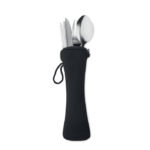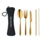 Zestaw sztućców ze stali nierdzewnej wielokrotnego użytku, składający się z widelca, noża, łyżki, słomki i szczotki do czyszczenia, zapakowany w praktyczne etui z neoprenu, to elegancki i funkcjonalny gadżet reklamowy. Stal nierdzewna zapewnia trwałość, wytrzymałość oraz łatwość w utrzymaniu czystości sztućców, co czyni je idealnym rozwiązaniem do codziennego użytku, a także podczas pikników, podróży czy w biurze. W zestawie znajdująca się słomka z metalu wraz z dedykowaną szczoteczką do jej czyszczenia podkreśla zaangażowanie w redukcję odpadów plastikowych i promuje zdrowy styl życia. Etui z neoprenu nie tylko ułatwia przenoszenie i przechowywanie zestawu, ale także chroni sztućce przed uszkodzeniami i zabrudzeniem. Personalizacja etui poprzez nadruk lub haft logo firmy może skutecznie zwiększyć rozpoznawalność marki, oferując jednocześnie odbiorcom wysokiej jakości, praktyczny i estetyczny produkt. Taki zestaw sztućców ze stali nierdzewnej z etui jest doskonałym wyborem dla firm poszukujących eleganckich, trwałych i przyjaznych dla środowiska gadżetów reklamowych, które zostaną docenione przez odbiorców za ich użyteczność i design.