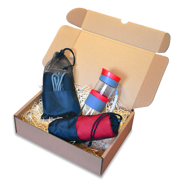 Zestaw Upominkowy Fitness to idealne rozwiązanie dla każdego, kto ceni sobie aktywny styl życia i poszukuje kompletnego zestawu akcesoriów fitness. W skład zestawu wchodzą: funkcjonalna skakanka, taśma oporowa o średnim oporze (R07991.02), szklana butelka o pojemności 440 ml (R08290.08) idealna do nawadniania organizmu podczas treningu, oraz wygodny ręcznik sportowy (R07979.08), niezbędny po intensywnym wysiłku. Całość zestawu jest elegancko pakowana w tekturowe pudełko wyściełane naturalnym wypełniaczem (wełna drzewna), co czyni go doskonałym wyborem na prezent dla miłośników sportu i aktywności fizycznej. Zestaw Upominkowy Fitness doskonale sprawdzi się zarówno w domowym treningu, jak i na siłowni czy w plenerze. Możliwość umieszczenia logo firmy na pudełku sprawia, że zestaw ten jest również świetnym narzędziem marketingowym dla firm z branży sportowej, fitness oraz jako korporacyjny upominek. Zestaw Upominkowy Fitness to praktyczne i stylowe rozwiązanie, zachęcające do utrzymania aktywnego trybu życia i dbałości o zdrowie i kondycję fizyczną.
