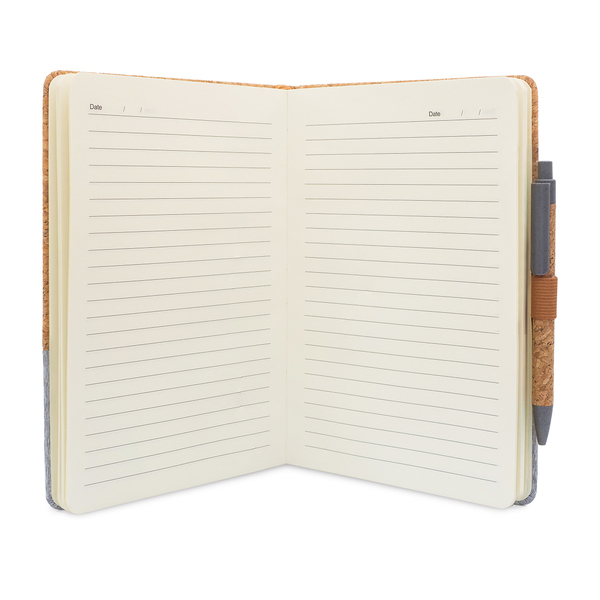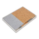 Zestaw z notesem Tossa to elegancki i ekologiczny gadżet reklamowy, idealny dla firm pragnących promować zrównoważone rozwiązania. Ten notes łączy naturalny korek z płótnem, tworząc produkt o unikalnym i stylowym designie. W formacie A5 z 80 kartkami w linie o gramaturze 70 g/m2, jest doskonały do codziennych notatek. Do zestawu dołączony jest długopis wykonany z korka, słomy pszennej i PP, co podkreśla ekologiczny charakter produktu. Pakowany w estetyczne pudełko, zestaw jest idealnym wyborem na upominek dla klientów biznesowych, pracowników oraz partnerów firmy. Z możliwością umieszczenia logo, zestaw z notesem Tossa staje się doskonałym narzędziem marketingowym, podkreślającym zaangażowanie firmy w promowanie zrównoważonych i przyjaznych dla środowiska praktyk. Jest to ideal