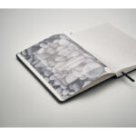 Notatnik A5 z twardą okładką wykonaną z recyklingowanego kartonu, zawierający 160 stron z papieru kamiennego w linie (80 kartek), jest innowacyjnym i ekologicznym gadżetem reklamowym, który łączy w sobie funkcjonalność, trwałość i troskę o środowisko. Użycie recyklingowanego kartonu do produkcji okładki oraz papieru kamiennego, który jest trwały i odporny na wodę, sprawia, że notatnik jest nie tylko przyjazny dla planety, ale również wyjątkowo praktyczny. Dopasowana gumka zamykająca i tasiemka do oznaczania stron zwiększają komfort użytkowania, czyniąc ten notatnik doskonałym narzędziem do codziennych notatek, zarówno w pracy, jak i w podróży. Personalizacja notatnika poprzez umieszczenie logo firmy może przyczynić się do budowania pozytywnego wizerunku marki, podkreślając jej zaangażowanie w działania na rzecz ochrony środowiska. Taki zeszyt to idealny upominek dla klientów i partnerów biznesowych, którzy cenią sobie oryginalność i ekologiczne podejście do życia oraz biznesu.